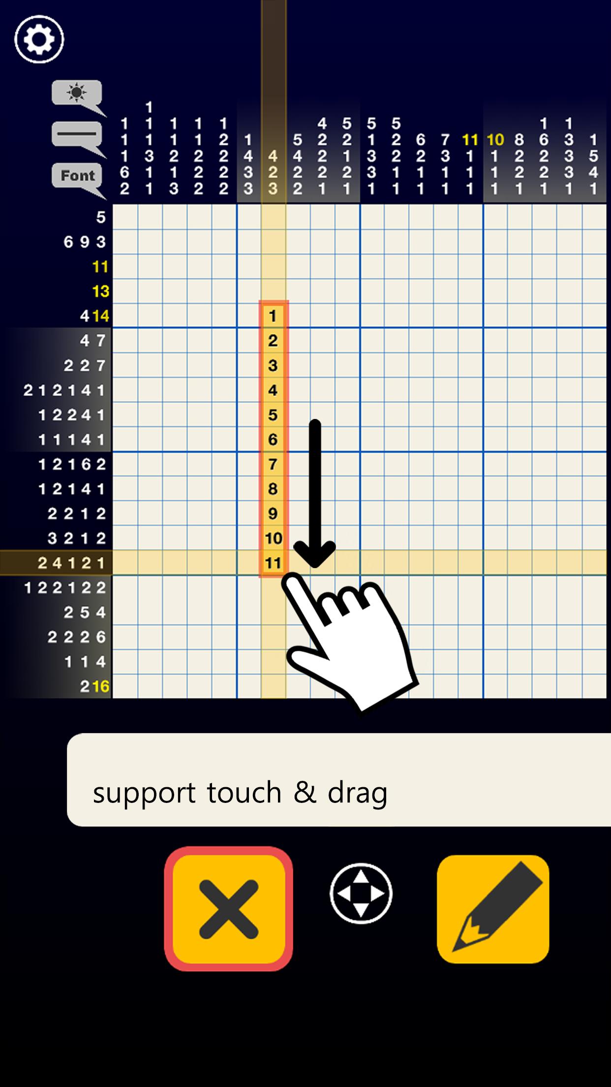 El juego proporciona pistas a lo largo de los bordes superior e izquierdo de la cuadrícula. Estas pistas indican el número de cuadrados rellenos consecutivos en cada fila o columna. Los jugadores deben deducir el patrón de cuadrados llenos y vacíos basándose en estas pistas. Al colocar estratégicamente cruces para marcar cuadrados vacíos y círculos para indicar cuadrados llenos, los jugadores revelan gradualmente la imagen oculta.