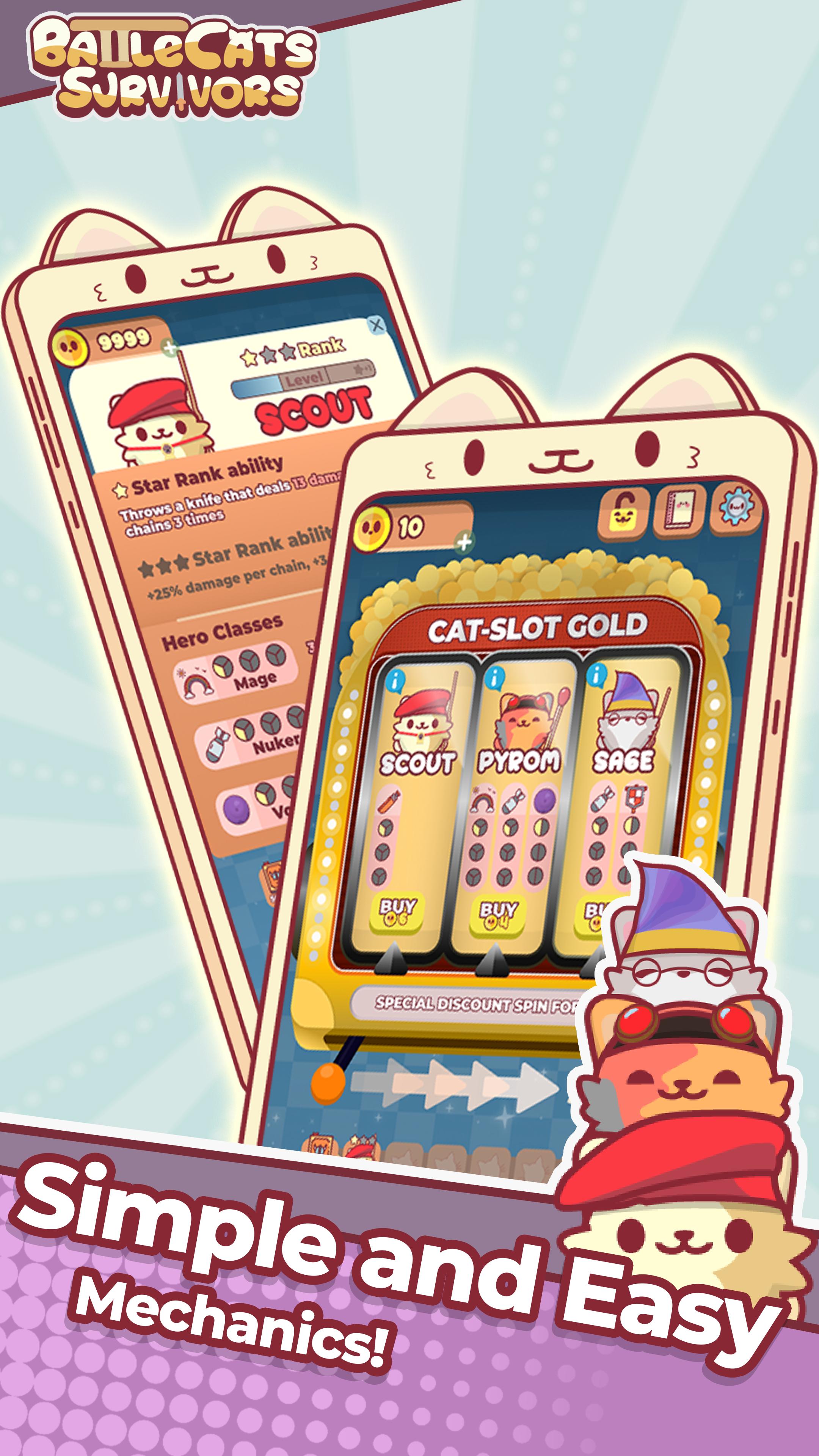 -Compétences et objets Roguelite pour exploiter les capacités de votre héros et ses bizarreries spéciales pour cet avantage stratégique. Si vous aimez les jeux à haute rejouabilité, vous adorerez Battle Cats