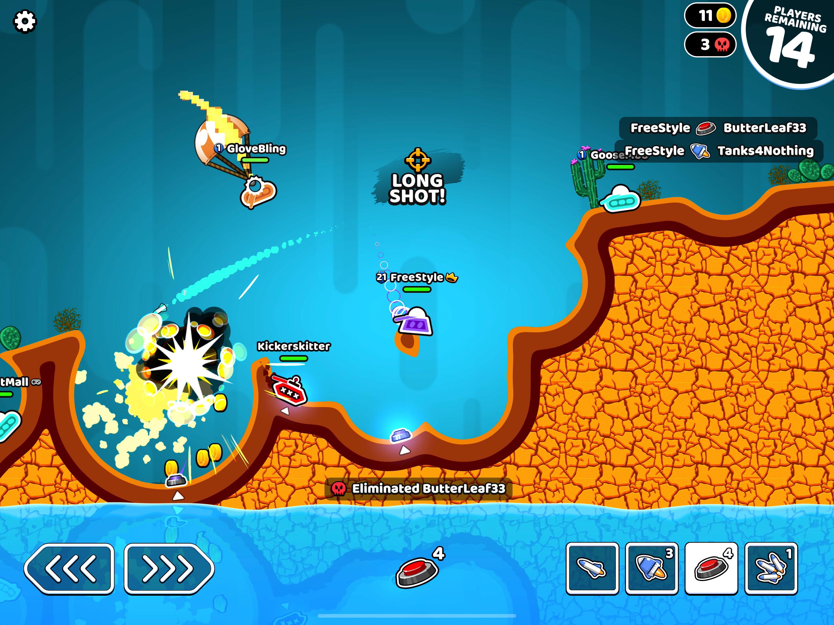 De puissants Robo-Tanks, capables d'escalader des murs, de sauter des roquettes et de pomper de l'artillerie, sont le véhicule de choix dans cette fusillade au rythme effréné, où le but est de survivre plus longtemps que la concurrence. Récupérez le butin pour améliorer votre arsenal, creusez un tunnel dans le terrain pour vous mettre à l'abri et collecter des trésors enfouis, et évitez la montée des eaux pour devenir le BLAST ONE DEBOUT !
